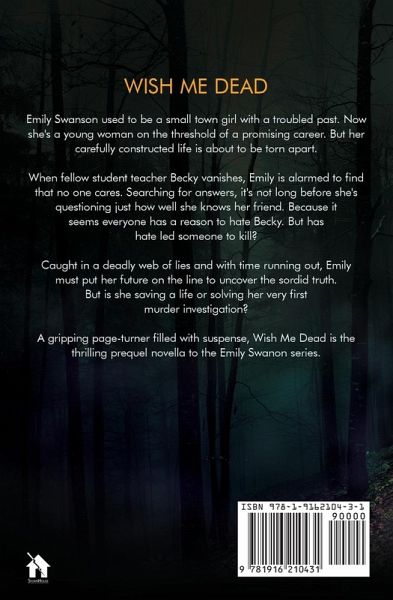 Friendship can be deadly... Emily Swanson used to be a small town girl with a troubled past. Now she's a young woman with a bright future. But her carefully constructed life is about to be torn apart. When fellow student teacher Becky vanishes, Emily is alarmed to find that no one cares. Searching for answers, it's not long before she's questioning just how well she knows her friend. Because it seems everyone has a reason to hate Becky. But has hate led someone to kill? Caught in a deadly web of lies and with time running out, Emily must race to uncover the sordid truth. But is she saving a life or solving her first murder investigation? A page-turning suspense thriller, Wish Me Dead is the standalone prequel to the Emily Swanson series, and an exciting glimpse for fans into the private detective's past.