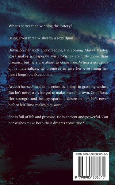 What's better than winning the lottery? Being given three wishes by a sexy djinn... Down on her luck and dreading the coming Alaska winter, Rosa makes a desperate wish. Wishes are little more than dreams... but hers are about to come true. When a gorgeous djinn materializes, he promises to give her everything her heart longs for. Except him. Ardeth has seen and done countless things in granting wishes. But he's never truly longed to make one of his own. Until Rosa. Her strength and beauty sparks a desire in him he's never before felt. Rosa makes him want. She is full of life and promise. He is ancient and powerful. Can her wishes make both their dreams come true?