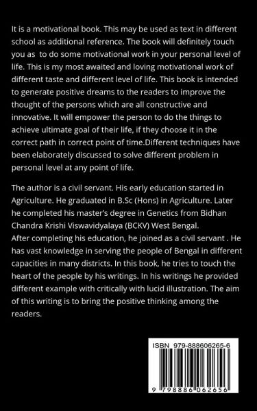 It is a motivational book written in lucid language in Bengali version. This may be used as text in different school as additional reference. The book will definitely touch you as to do some motivational work in your personal level of life. This is my most awaited and loving motivational work of different taste and different level of life. This book is intended to generate positive dreams to the readers to improve the thought of the persons which are all constructive and innovative. It will empower the person to do the things to achieve ultimate goal of their life, if they choose it in the correct path in correct point of time. In Bengali version, an attempt has been taken to uplift the standard of the life of the common people. Different techniques have been elaborately discussed to solve different problem in personal level at any point of life.