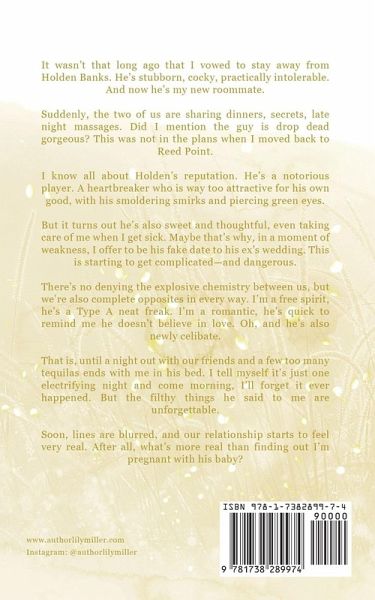 It wasn't that long ago that I vowed to stay away from Holden Banks. He's stubborn, cocky, practically intolerable. And now he's my new roommate. Suddenly, the two of us are sharing dinners, secrets, late night massages. Did I mention the guy is drop dead gorgeous? This was not in the plans when I moved back to Reed Point. I know all about Holden's reputation. He's a notorious player. A heartbreaker who is way too attractive for his own good, with his smoldering smirks and piercing green eyes. But it turns out he's also sweet and thoughtful, even taking care of me when I get sick. Maybe that's why, in a moment of weakness, I offer to be his fake date to his ex's wedding. This is starting to get complicated-and dangerous. There's no denying the explosive chemistry between us, but we're also complete opposites in every way. I'm a free spirit, he's a Type A neat freak. I'm a romantic, he's quick to remind me he doesn't believe in love. Oh, and he's also newly celibate. That is, until a night out with our friends and a few too many tequilas ends with me in his bed. I tell myself it's just one electrifying night and come morning, I'll forget it ever happened. But the filthy things he said to me are unforgettable. Soon, lines are blurred, and our relationship starts to feel very real. After all, what's more real than finding out I'm pregnant with his baby?