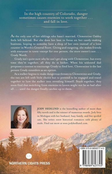 In the high country of Colorado, danger sometimes causes enemies to work together . . . and fall in love. As the only one of her siblings who hasn't married, Clementine Oakley feels left behind. But she does her best to focus on her candy-making business, hoping to someday have a shop of her own instead of a lone counter in Worth's General Store. Giving and outgoing, she makes friends with everyone in town-except for one person, the store owner's son . . . Grady Worth. Grady isn't quite sure why he can't get along with Clementine, but every time they're together, all they do is bicker. When…mehr