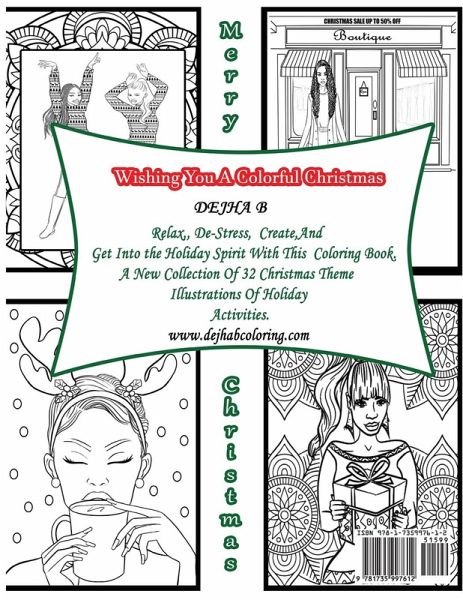Relax,, De-Stress, Create, and Get Into the Holiday Spirit With This Coloring Book. A New Collection Of 32 Christmas Theme Illustrations Of Holiday Activities, and Joyful Christmas Song Quotes.