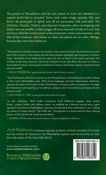 The poems in Wissahickon exist for one reason: to draw our attention to a natural world that is ensouled. Trees, rock, water, fungi, animals, fish, and birds--all participate in Spirit, and all are permeated with soul-stuff. The Christian, Druidic, Tantric, and classical viewpoints, often overlapping and folded into one another in these pages, all serve one end: to help us to see, feel, and know that the world around us has awareness--even consciousness--and that all the creatures with whom we share our planet are our elder siblings, because they were here before us.
