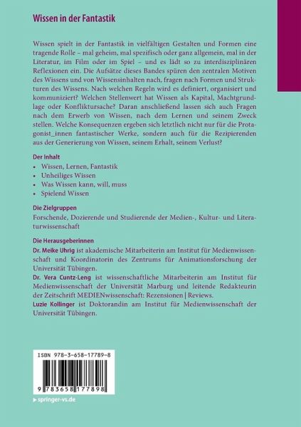 Der Band widmet sich aus interdisziplinärer Perspektive den vielfältigen Funktion und Bedeutung von Wissen in der Fantastik: Ob geheim, spezifisch oder allgemein, lassen sich zentrale Motive des Wissens und der Wissensinhalte bestimmen? Worin bestehen Formen und Strukturen des Wissens - nach welchen Regeln wird es definiert, organisiert und kommuniziert? Welchen Stellenwert schließlich hat Wissen als Kapital, als Machtgrundlage, als Konfliktursache?