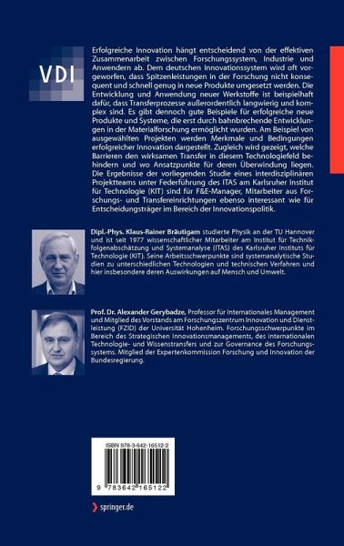 Erfolgreiche Innovation hängt entscheidend von der effektiven Zusammenarbeit zwischen Forschungssystem, Industrie und Anwendern ab. Dem deutschen Innovationssystem wird oft vorgeworfen, dass Spitzenleistungen in der Forschung nicht konsequent und schnell genug in neue Produkte umgesetzt werden. Die Entwicklung und Anwendung neuer Werkstoffe ist beispielhaft dafür, dass Transferprozesse außerordentlich langwierig und komplex sind. Es gibt dennoch gute Beispiele für erfolgreiche neue Produkte und Systeme, die erst durch bahnbrechende Entwicklungen in der Materialforschung ermöglicht wurden. Am Beispiel von ausgewählten Projekten werden Merkmale und Bedingungen erfolgreicher Innovation dargestellt. Zugleich wird gezeigt, welche Barrieren den wirksamen Transfer in diesem Technologiefeld behindern und wo Ansatzpunkte für deren Überwindung liegen. Die Ergebnisse der vorliegenden Studie eines interdisziplinären Projektteams unter Federführung des ITAS am Karlsruher Institut für Technologie (KIT) sind für F&E-Manager, Mitarbeiter aus Forschungs- und Transfereinrichtungen ebenso interessant wie für Entscheidungsträger im Bereich der Innovationspolitik.