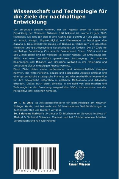 Der ehrgeizige globale Rahmen, der als Agenda 2030 für nachhaltige Entwicklung der Vereinten Nationen (UN) bekannt ist, wurde im Jahr 2015 festgelegt. Sie gibt den Weg in eine nachhaltige Zukunft vor und zielt darauf ab, Armut, Hunger, Ungerechtigkeit und Klimawandel zu beseitigen, den Zugang zu Gesundheitsversorgung und Bildung zu verbessern und gerechte, friedliche und gleichberechtigte Gesellschaften zu fördern. Die 17 Ziele für nachhaltige Entwicklung (Sustainable Development Goals, SDGs) und ihre 169 Zielvorgaben sind ein wichtiger Teil dieser Agenda. Die Entwicklung der SDGs war eine beispiellose gemeinsame Anstrengung, die nationale Regierungen und Millionen von Menschen weltweit in der Diskussion und Umsetzung dieser ehrgeizigen Agenda vereinte.Diese Ziele bieten einen umfassenden und wissenschaftlich strengen Rahmen, der wirtschaftliche, soziale und ökologische Aspekte umfasst und eine systematische strategische Planung und wissenschaftliche Intervention für ihre erfolgreiche Integration in politische Maßnahmen und Aktivitäten erfordert. Dieses Buch bietet Einblicke in die Rolle von Wissenschaft und Technologie bei der Erreichung ausgewählter SDGs, insbesondere aus der Perspektive des indischen Kontexts.