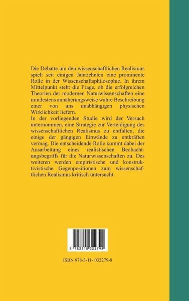 Die Debatte um den wissenschaftlichen Realismus spielt seit einigen Jahrzehnten eine prominente Rolle in der Wissenschaftsphilosophie. In ihrem Mittelpunkt steht die Frage, ob die erfolgreichen Theorien der modernen Naturwissenschaften eine mindestens annäherungsweise wahre Beschreibung einer von uns unabhängigen physischen Wirklichkeit liefern. In der vorliegenden Studie wird der Versuch unternommen, eine Strategie zur Verteidigung des wissenschaftlichen Realismus zu entfalten, die einige der gängigen Einwände zu entkräften vermag. Die entscheidende Rolle kommt dabei der Ausarbeitung eines realistischen Beobachtungsbegriffs für die Naturwissenschaften zu. Des weiteren werden empiristische und konstruktivistische Gegenpositionen zum wissenschaftlichen Realismus kritisch untersucht.
