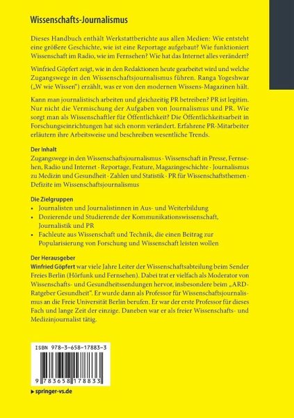 Dieses Handbuch enthält Werkstattberichte aus allen Medien: Wie entsteht eine größere Geschichte, wie ist eine Reportage aufgebaut? Wie funktioniert Wissenschaft im Radio, wie im Fernsehen? Wie hat das Internet alles verändert?