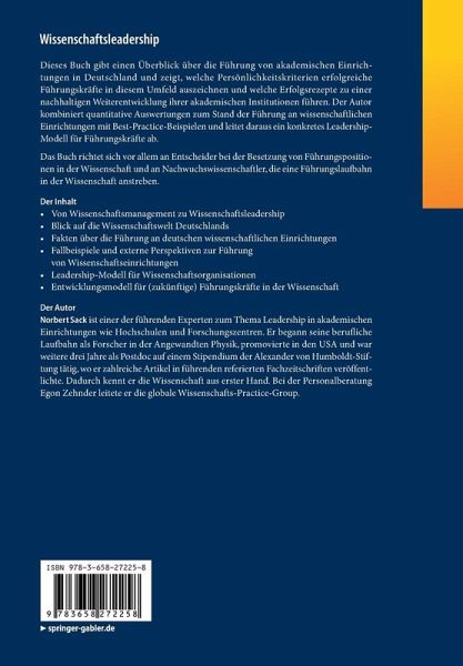 1. Einführung und Kernfragen.- 2. Von Wissenschaftsmanagement zu Wissenschaftsleadership.- 3. Blick auf die Wissenschaftswelt in Deutschland.- 4. Fakten über die Führung an deutschen wissenschaftlichen Einrichtungen.- 5. Fallbeispiele.- 6. Der Blick von außen: Leadership in Akademia in anderen Ländern.- 7. "What got you here won't get you there" - die nächsten Herausforderungen.- 8. Synthese.- 9. Zusammenfassung und Ausblick.