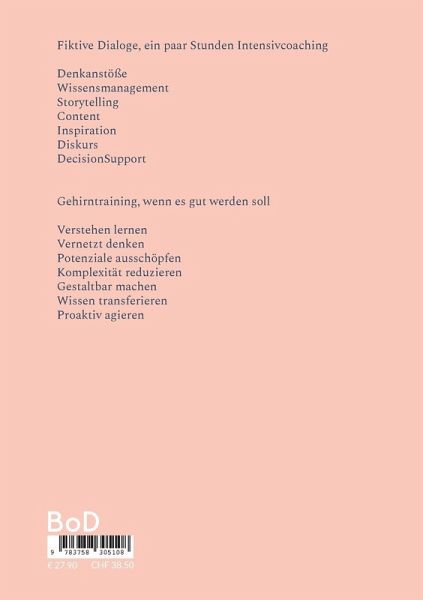Fiktive Dialoge, ein paar Stunden IntensivcoachingDenkanstößeWissensmanagementStorytellingContentInspirationDiskursDecisionSupportGehirntraining, wenn es gut werden sollVerstehen lernenVernetzt denkenPotenziale ausschöpfenKomplexität reduzierenGestaltbar machenWissen transferierenProaktiv agieren