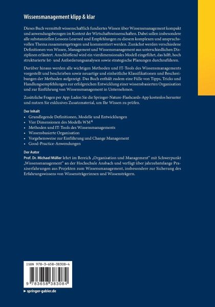 Darüber hinaus werden alle wichtigen Methoden und IT-Tools des Wissensmanagements vorgestellt und beschrieben sowie neuartige und einheitliche Klassifikationen und Beschreibungen der Methoden aufgezeigt.