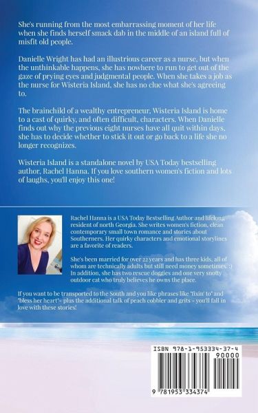 She's running from the most embarrassing moment of her life when she finds herself smack dab in the middle of an island full of misfit old people. Danielle Wright has had an illustrious career as a nurse, but when the unthinkable happens, she has nowhere to run to get out of the gaze of prying eyes and judgmental people. When she takes a job as the nurse for Wisteria Island, she has no clue what she's agreeing to. The brainchild of a wealthy entrepreneur, Wisteria Island is home to a cast of quirky, and often difficult, characters. When Danielle finds out why the previous eight nurses have all quit within days, she has to decide whether to stick it out or go back to a life she no longer recognizes. This women's fiction novel from USA Today bestselling author, Rachel Hanna, will make you laugh out loud, tear up and smile until your cheeks hurt!