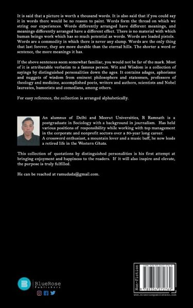 An alumnus of Delhi and Meerut Universities, R Ramnath is a postgraduate in Sociology with a background in journalism. Has held various positions of responsibility while working with top management in the corporate and nonprofit sectors over a 30-year long career. A crossword enthusiast, a mountain lover and a music buff, he now leads a retired life in the Western Ghats. This collection of quotations by distinguished personalities is his first attempt at bringing enjoyment and happiness to the readers. If it will also inspire and elevate, the purpose is truly fulfilled. He can be reached at ramudada@gmail.com.