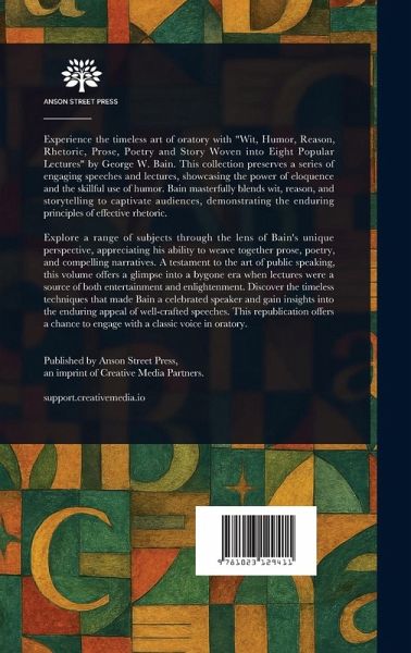 Experience the timeless art of oratory with "Wit, Humor, Reason, Rhetoric, Prose, Poetry and Story Woven into Eight Popular Lectures" by George W. Bain. This collection preserves a series of engaging speeches and lectures, showcasing the power of eloquence and the skillful use of humor. Bain masterfully blends wit, reason, and storytelling to captivate audiences, demonstrating the enduring principles of effective rhetoric. Explore a range of subjects through the lens of Bain's unique perspective, appreciating his ability to weave together prose, poetry, and compelling narratives. A testament to the art of public speaking, this volume offers a glimpse into a bygone era when lectures were a source of both entertainment and enlightenment. Discover the timeless techniques that made Bain a celebrated speaker and gain insights into the enduring appeal of well-crafted speeches. This republication offers a chance to engage with a classic voice in oratory. This work has been selected by scholars as being culturally important, and is part of the knowledge base of civilization as we know it. This work is in the public domain in the United States of America, and possibly other nations. Within the United States, you may freely copy and distribute this work, as no entity (individual or corporate) has a copyright on the body of the work. Scholars believe, and we concur, that this work is important enough to be preserved, reproduced, and made generally available to the public. We appreciate your support of the preservation process, and thank you for being an important part of keeping this knowledge alive and relevant.