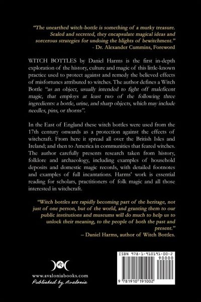 "The unearthed witch-bottle is something of a murky treasure. Sealed and secreted, they encapsulate magical ideas and sorcerous strategies for undoing the blights of bewitchment." - Dr. Alexander Cummins, Foreword WITCH BOTTLES by Daniel Harms is the first in-depth exploration of the history, culture and magic of this little-known practice used to protect against and remedy the believed effects of misfortunes attributed to witches. The author defines a Witch Bottle "as an object, usually intended to fight off maleficent magic, that employs at least two of the following three ingredients: a bottle, urine, and sharp objects, which may include needles, pins, or thorns". In the East of England these witch bottles were used from the 17th century onwards as a protection against the effects of witchcraft. From here it spread all over the British Isles and Ireland; and then to America in communities that feared witches. The author carefully presents research taken from history, folklore and archaeology, including examples of household deposits and domestic magic records, with detailed footnotes and examples of full incantations. Harms' work is essential reading for scholars, practitioners of folk magic and all those interested in witchcraft. "Witch bottles are rapidly becoming part of the heritage, not just of one person, but of the world, and granting them to our public institutions and museums will do much to help us to unlock their meaning, to the people of both the past and present." - Daniel Harms, author of Witch Bottles.