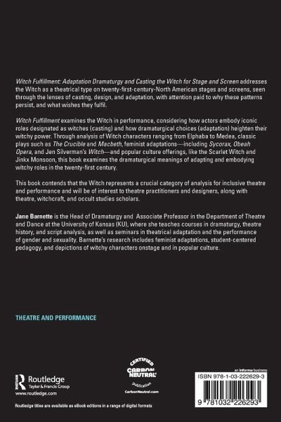 Witch Fulfillment: Adaptation Dramaturgy & Casting the Witch for Stage & Screen addresses the Witch as a theatrical type on twenty-first century North American stages and screens, seen through the lens of casting, design, and adaptation, with attention paid to why these patterns persist, and what wishes they fulfil.