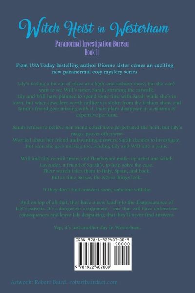 Book eleven in the bestselling cosy mystery series, which follows Aussie photographer and witch Lily as she navigates a new life in the UK. Lily's feeling a bit out of place at a high-end fashion show, but she can't wait to see Will's sister, Sarah, strutting the catwalk. Lily and Will have planned to spend some time with Sarah while she's in town, but when jewellery worth millions is stolen from the fashion show and Sarah's friend goes missing with it, their plans disappear in a miasma of expensive perfume. Sarah refuses to believe her friend could have perpetrated the heist, but Lily's magic proves otherwise. Worried about her friend and wanting answers, Sarah decides to investigate. But soon she goes missing too, sending Lily and Will into a panic. Will and Lily recruit Imani and flamboyant make-up artist and witch Lavender, a friend of Sarah's, to help solve the case. Their search takes them to Italy, Spain, and back. But as times passes, the worse things look. If they don't find answers soon, someone will die. And on top of all that, they have a new lead into the disappearance of Lily's parents. It's a dangerous assignment-one that will have unforeseen consequences and leave Lily despairing that they'll never find answers. Yep, it's just another day in Westerham.