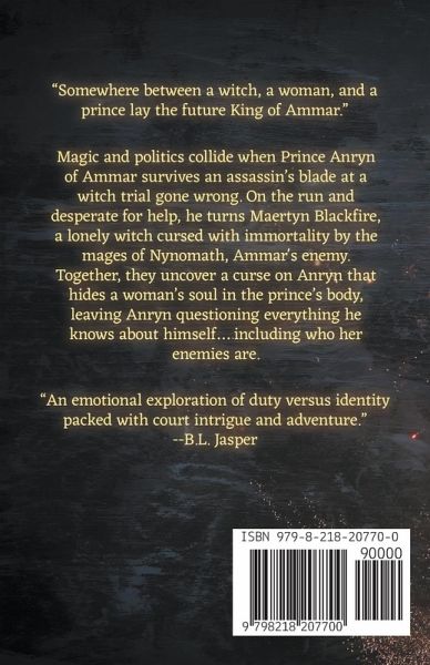 When a witch mistakes a prince for a girl, a kingdom ignites. Prince Anryn of Ammar has spent his life striving to please his father, the legendary Lightning King. He studies, fences, burns witches at the stake. But when assassins strike, he is left wounded and alone in the mountains, wondering if his father ordered his death. There he meets Maertyn Blackfire, a cursed witch who has lived too long. In Anryn he sees what no one else dares: a curse like his own, trapping a woman's soul in a man's body. Bound by survival, Maertyn vows to protect the prince on a quest to uncover the would-be killer. At court, Lady Beatrice prepares to wed Anryn. She defies Ammar's suffocating customs, earning the enmity of her mother-in-law and the friendship of the mysterious Ciamon Caelt, who listens for any word of Anryn. When the assassin comes to the wedding, Anryn must embrace the witchcraft he was taught to hate to survive. But the Lightning King suffers no witch to live-not even the immortal Maertyn. Caught between faith and fire, the prince, the witch, and the bride must choose what to sacrifice and who to save... or see their kingdom turned to ash.