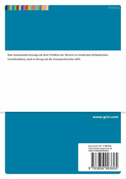 Seminar paper from the year 2004 in the subject History - Africa, grade: 1, University of Hannover, language: English, abstract: Eine Auseinandersetzung mit dem Problem der Hexerei in modernen Afrikanischen Gesellschaften, auch in Bezug auf die Immunschwäche AIDS.