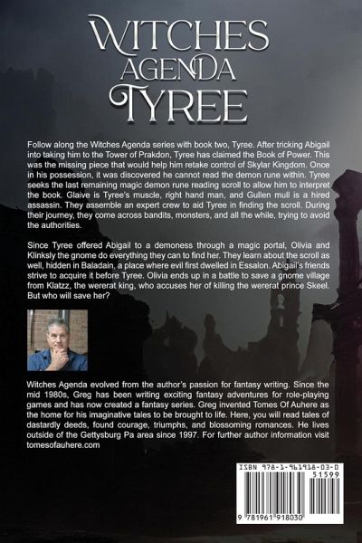 After tricking Abigail into taking him to the Tower of Prakdon, Tyree has claimed the book of power. This was the missing piece that would help him retake control of Skylar Kingdom. Once in his possession, it was discovered he cannot read the demon rune within. Tyree seeks the last remaining magic demon rune reading scroll to allow him to interpret the book. Glaive is Tyree's muscle, right hand man, and Gullen mull is a hired assassin. They assemble an expert crew to aid Tyree in finding the scroll. During their journey, they come across bandits, monsters, and all the while, trying to avoid the authorities. Since Tyree offered Abigail to a demoness through a magic portal, Olivia and Klinksly the gnome do everything they can to find her. They learn about the scroll as well, hidden in Baladain, a place where evil first dwelled in Essalon. Abigail's friends strive to acquire it before Tyree. Olivia ends up in a battle to save a gnome village from Klatzz, the wererat king, who accuses her of killing the wererat prince Skeel. But who will save her?