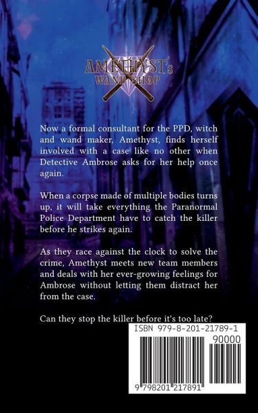 Now a formal consultant for the PPD, witch and wand maker, Amethyst, finds herself involved with a case like no other when Detective Ambrose asks for her help once again. When a corpse made of multiple bodies turns up, it will take everything the Paranormal Police Department have to catch the killer before he strikes again. As they race against the clock to solve the crime, Amethyst meets new team members and deals with her ever-growing feelings for Ambrose without letting them distract her from the case. Can they stop the killer before it's too late? - Witches and Stitches is book two of the…mehr