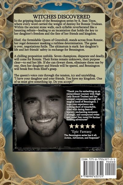 In the gripping finale of the Bennington series by K. Stan Tinos, where every word carried the weight of destiny for Ronnie Trudeau. Within the ancient stone walls, each syllable reverberated like a haunting refrain-leading to an incantation that holds the key to her daughter's freedom and the fate of her friends and kingdom. Elisif's regal demeanor masked a ruthless determination. Her eyes bore into Ronnie, calculating, unyielding. Negotiations had failed; there was no middle ground. The ultimatum hung in the air like a blade poised to strike: her daughter's life and her friends' freedom in exchange for the Kingdom of Bennington. But there was a twist-a chilling proposition that sent shivers down Ronnie's spine. Seven champions, veiled in mystery, would come for her. Their forms remained unknown, their purpose clear-to end her life. If she could outwit them, eliminate them one by one, then her daughter and friends would be spared, and Bennington would be released from Elisif's grasp. The Queen's voice cut through the tension, icy and unyielding: "I have your daughter and your friends. You have my Kingdom. One of us must give something up. Do you accept?" Ronnie's mind raced as she learned the true meaning of sacrifice. Love, courage, and hope intertwined-a potent magic that defied the darkness threatening to consume them all in this thrilling conclusion to an epic adventure.
