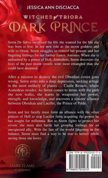 Seren De Salvo sacrificed the life she wanted for the life she was born to live. In her new role as the moon goddess and wife to Orion, Seren struggles to control her powers and her lingering feelings for her former fiance, Antonio. When she is ambushed by a prince of Hell, Asmodeus, Seren discovers the lives of the past moon vessels were more entangled than she could have dreamed. After a mission to destroy the evil Obsidian coven goes wrong, Seren sinks into a deep depression, seeking refuge in the most unlikely of places ... Castle Resnov, where Asmodeus resides. As Seren comes to terms with the path she now walks, she learns to weaponize her power, strength, and knowledge, and uncovers a sinister alliance between Obsidian and Lucifer, the Prince of Pride. Seren and her family must form an alliance with the other princes of Hell to stop Lucifer from acquiring the power he has sought for millennia. But as Seren fights to protect her coven, she must also battle her growing feelings for an unexpected ally. With the fate of the world lingering in the balance, Seren must find a way to be true to herself while saving those she loves.