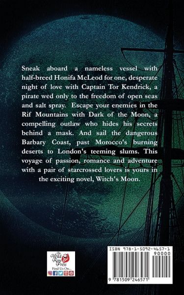 Sneak aboard a nameless vessel with half-breed Honifa McLeod for one, desperate night of love with Captain Tor Kendrick, a pirate wed only to the freedom of open seas and salt spray. Escape your enemies in the Rif Mountains with Dark of the Moon, a compelling outlaw who hides his secrets behind a mask. And sail the dangerous Barbary Coast, past Morocco's burning deserts to London's teeming slums. This voyage of passion, romance and adventure with a pair of starcrossed lovers is yours in the exciting novel, Witch's Moon.