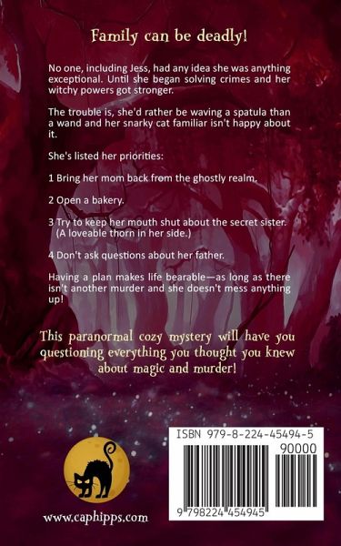 Family feuds, ghosts with amnesia, and fatal lies! No one, including Jess, had any idea she was an exceptional witch. Until she began solving crimes using her senses. The trouble is, she'd rather be waving a spatula than a wand and her snarky cat familiar isn't happy about it. She's listed her priorities: 1 Bring her mom back from the ghostly realm. 2 Open a bakery. 3 Keep quiet about the secret sister. (A lovable thorn in her side.) 4 Don't ask questions about her missing father. Having a plan makes life bearable-as long as there isn't another murder and she doesn't mess anything up! This paranormal cozy mystery will have you questioning everything you thought you knew about magic and murder! Midlife Potions Witchy Awakening Witchy Hot Spells Witchy Flash Back Witchy Bad Blood Witchy Coffee Crime - coming 2025! C. A. Phipps is a USA Today best-selling author from beautiful New Zealand. An empty-nester, Cheryl lives in a small town with her wonderful husband, 'himself'. Her extended family keeps her busy and when she's not writing, there is just enough space for a crazy mixed breed dog who stole her heart! She enjoys family times, baking, and her quest for the perfect latte.