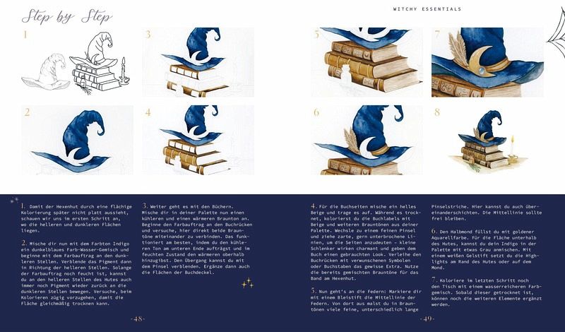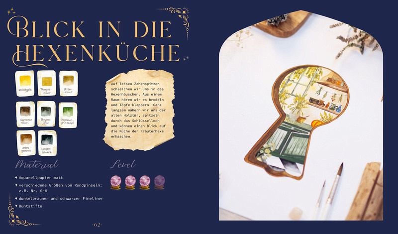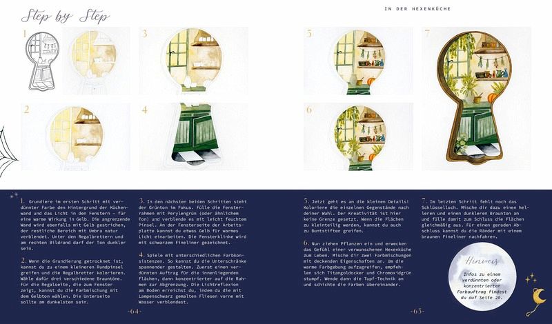 Tauche mit dem neuen Watercolor-Malbuch ein in die magische Welt der Hexen: Du wirfst einen Blick in die Hexenküche und entdeckst die Kraft der Kräuter und Tränke. Zur Walpurgisnacht überraschen dich Motive aus dem dunklen Hexenwald mit mystischen Wesen. Außerdem warten ganz unterschiedliche Zauberutensilien darauf, mit Pinsel und Farbe entdeckt zu werden. Im Kapitel "Moon Magic" widmest du dich der Kraft des Mondes und erschaffst passend dazu besondere Watercolor-Effekte. Lass dich verzaubern - und entdecke, wie viel kreative Magie in dir steckt!