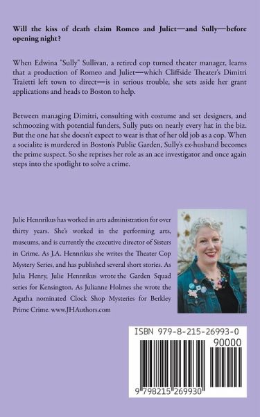 Will the kiss of death claim Romeo and Juliet¿and Sully¿before opening night? When Edwina "Sully" Sullivan, a retired cop turned theater manager, learns that a production of Romeo and Juliet¿which Cliffside Theater's Dimitri Traietti left town to direct¿is in serious trouble, she sets aside her grant applications and heads to Boston to help. Between managing Dimitri, consulting with costume and set designers, and schmoozing with potential funders, Sully puts on nearly every hat in the biz. But the one hat she doesn't expect to wear is that of her old job as a cop. When a socialite is murdered in Boston's Public Garden, Sully's ex-husband becomes the prime suspect. So she reprises her role as an ace investigator and once again steps into the spotlight to solve a crime. ******** February should be off-season for the Cliffside Theater Company, but not this year. Dimitri Traietti has gone to Boston to direct Romeo and Juliet, but the show runs into trouble. Sully Sullivan, retired cop and current theater manager, goes back to her old stomping grounds to help. When a socialite it killed in Boston's Public Garden, Sully's ex-husband Gus is the prime suspect. After he disappears, Sully dusts off her detective skills to find him, and uncover the real murderer. All before opening night.