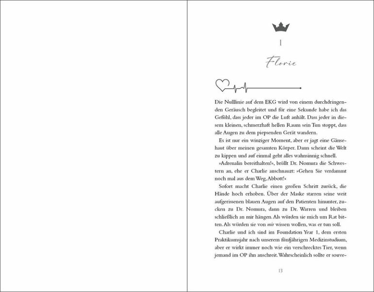 Die Geschichte weist ein starkes Spannungselement auf, denn Florie erhält vom Gang-Boss Cillian ihren ganz persönlichen Auftrag, der das Krankenhaus-Setting auf perfekte Weise mit dem Gang-Hintergrund kombiniert. Allein die ungewöhnliche Kombination dieser beiden Elemente hat mich total fasziniert und die Geschichte für mich besonders gemacht. Der Plot ist abwechslungsreich und entwickelt schnell eine Sogwirkung, der ich mich nicht entziehen konnte. Über Florie’s persönlichen Auftrag hinaus wird man auch immer tiefer in die Angelegenheiten des Gang-Lebens gezogen und deckt nach und nach mehr Details und Geheimnisse auf. Es hat mir wahnsinnig viel Spaß gemacht, gemeinsam mit Florie den Ungereimtheiten auf die Spur zu gehen.
