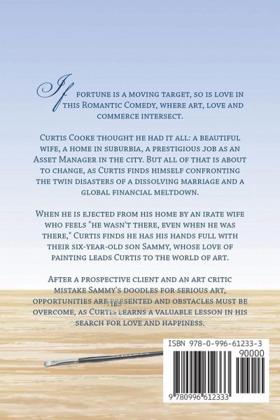 If fortune is a moving target, so is love in this tale of paradise lost and paradise regained. Curtis Cooke thought he had it all: a beautiful wife, a home in suburbia, a prestigious job as an Asset Manager in the city. But all of that is about to change, as Curtis finds himself confronting the twin disasters of a dissolving marriage and a global financial meltdown. When he is ejected from his home by an irate wife who feels "he wasn't there, even when he was there," Curtis finds he has his hands full with their six-year-old son Sammy, whose penchant for painting leads Curtis to the world of art. After a Prospective client mistakes Sammy's doodles for serious art, opportunities are presented and serious obstacles must be overcome as Curtis learns a valuable lesson in his search for love and happiness.