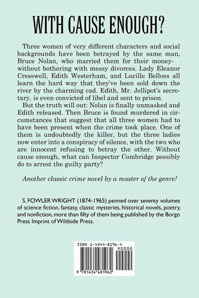 Three women of very different characters and social backgrounds have been betrayed by the same man, Bruce Nolan, who married them for their money -- without bothering with messy divorces. Lady Eleanor Cresswell, Edith Westerham, and Lucille Belloes all learn the hard way that they've been sold down the river by the charming cad. Edith, Mr. Jellipot's secretary, is even convicted of libel and sent to prison. But the truth will out: Nolan is finally unmasked and Edith released. Then Bruce is found murdered in circumstances that suggest that all three women had to have been present when the crime took place. One of them is undoubtedly the killer, but the three ladies now enter into a conspiracy of silence, with the two who are innocent refusing to betray the other. Without cause enough, what can Inspector Combridge possibly do to arrest the guilty party?