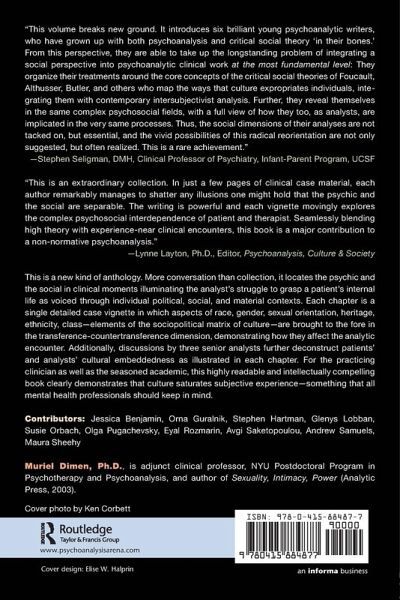 This is a new kind of anthology. More conversation than collection, it locates the psychic and the social in clinical moments illuminating the analyst's struggle to grasp a patient's internal life as voiced through individual political, social, and material contexts. Each chapter is a single detailed case vignette in which aspects of race, gender, sexual orientation, heritage, ethnicity, class - elements of the sociopolitical matrix of culture - are brought to the fore in the transference-countertransference dimension, demonstrating how they affect the analytic encounter. Additionally, discussions by three senior analysts further deconstruct patients' and analysts' cultural embeddedness as illustrated in each chapter. For the practicing clinician as well as the seasoned academic, this highly readable and intellectually compelling book clearly demonstrates that culture saturates subjective experience - something that all mental health professionals should keep in mind.