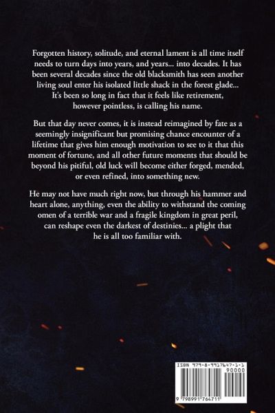 Forgotten history, solitude, and eternal lament is all time itself needs to turn days into years, and years... into decades. It has been several decades since the old blacksmith has seen another living soul enter his isolated little shack in the forest glade... It's been so long in fact that it feels like retirement, however pointless, is calling his name. But that day never comes, it is instead reimagined by fate as a seemingly insignificant but promising chance encounter of a lifetime that gives him enough motivation to see to it that this moment of fortune, and all other future moments that should be beyond his pitiful, old luck will become either forged, mended, or even refined, into something new. He may not have much right now, but through his hammer and heart alone, anything, even the ability to withstand the coming omen of a terrible war and a fragile kingdom in great peril, can reshape even the darkest of destinies... a plight that he is all too familiar with.