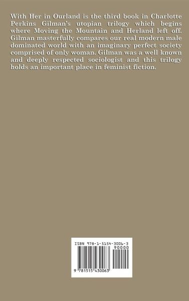 With Her in Ourland is the third book in Charlotte Perkins Gilman's utopian trilogy which begins where Moving the Mountain and Herland left off. Gilman masterfully compares our real modern male dominated world with an imaginary perfect society comprised of only woman. Gilman was a well known and deeply respected sociologist and this trilogy holds an important place in feminist fiction.