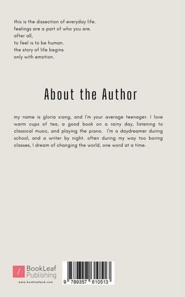 ""this is the dissection of everyday life. feelings are a part of who you are. after all, to feel is to be human. the story of life begins only with emotion.""