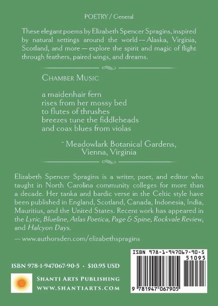 These elegant poems by Elizabeth Spencer Spragins, inspired by natural settings around the world — Alaska, Virginia, Scotland, and more — explore the spirit and magic of flight through feathers, paired wings, and dreams.