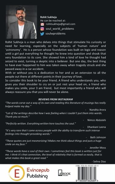 With or without you is a dedication to her and as an extension to all the people out there at different points in their journey of love. So consider this book to be your friend. A friend who understands you, who gives you their shoulder to cry on or just rest your head on, a friend who makes you smile, your 3 am friend, but most importantly a friend who will always reassure you that you will never be alone.