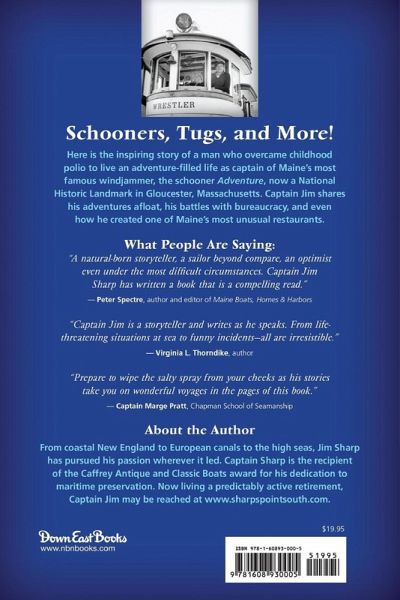 Here is the inspiring story of a man who overcame childhood polio to live an adventure-filled life as captain of Maine's most famous windjammer, the schooner Adventure, now a National Historic Landmark in Gloucester, Massachusetts. Captain Jim shares his adventures afloat, his battles with bureaucracy, and even how he created one of Maine's most unusual restaurants.