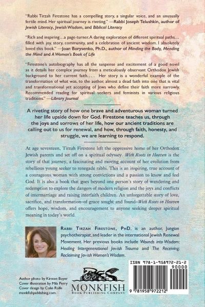 "A riveting story of how one brave and adventurous woman turned her life upside down for God. Firestone teaches us, through the joys and sorrows of her life, how our ancient traditions are calling out to us for renewal, and how, through faith, honesty, and struggle, we are learning to respond. At age seventeen, Tirzah Firestone left the oppressive home of her Orthodox Jewish parents and set off on a spiritual odyssey. With Roots in Heaven is the story of that journey, a fascinating and moving account of her evolution from rebellious young seeker to renegade rabbi. This is an inspiring, true account of a courageous woman with strong convictions and a passion to know and feel God. It is also a book that goes beyond one person's story of wandering and redemption to explore the dangers of modern religion and the joys and conflicts of intermarriage and raising interfaith children. An unforgettable story of love, sacrifice, and transformation-of grace sought and found-With Roots in Heaven offers hope, wisdom, and encouragement to anyone seeking deeper spiritual meaning in today's world"--