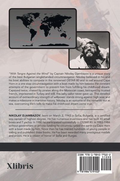 "With Tangra Against the Wind" by Captain Nikolay Djambazov is a unique story of the best Bulgarian singlehanded circumnavigator. Nikolay believed in his and his boat abilities to compete in the renowned OSTAR 80 and to sail around Cape Horn in a one stop circumnavigation with a boat made by him besides the constant attempts of the government to prevent him from fulfilling his childhood dream. Capsized twice, chased by pirates along the Moroccan coast, betrayed by trusted friends, imprisoned in Turkey and still, this salty sailor never gave up. This detailed account of extraordinary strength of willpower stands strong against high seas and makes a milestone in maritime history. Nikolay is an epitome of the romantic out at sea, overcoming life's tolls to make his childhood dream come true.
