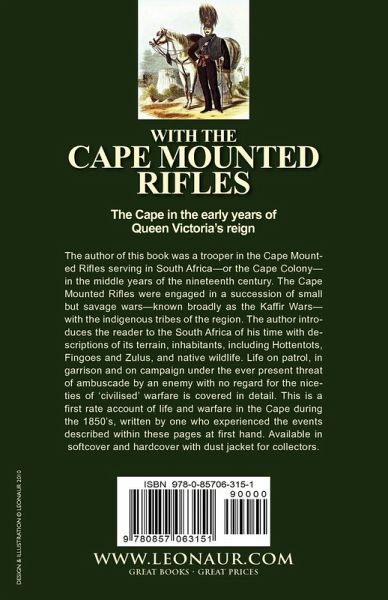 The Cape in the early years of Queen Victoria's reign The author of this book was a trooper in the Cape Mounted Rifles serving in South Africa-or the Cape Colony-in the middle years of the nineteenth century. The Cape Mounted Rifles were engaged in a succession of small but savage wars-known broadly as the Kaffir Wars-with the indigenous tribes of the region. The author introduces the reader to the South Africa of his time with descriptions of its terrain, inhabitants, including Hottentots, Fingoes and Zulus, and native wildlife. Life on patrol, in garrison and on campaign under the ever present threat of ambuscade by an enemy with no regard for the niceties of 'civilised' warfare is covered in detail. This is a first rate account of life and warfare in the Cape during the 1850's, written by one who experienced the events described within these pages at first hand. Available in softcover and hardcover with dust jacket for collectors.