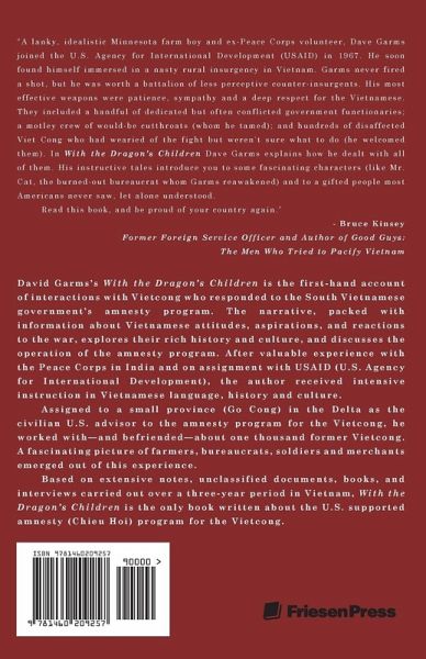 David Garms's With the Dragon's Children is the first-hand account of interactions with Vietcong who responded to the South Vietnamese government's amnesty program. The narrative, packed with information about Vietnamese attitudes, aspirations, and reactions to the war, explores their rich history and culture, and discusses the operation of the amnesty program. After valuable experience with the Peace Corps in India and on assignment with USAID (U.S. Agency for International Development), the author received intensive instruction in Vietnamese language, history and culture. Assigned to a small province (Go Cong) in the Delta as the civilian U.S. advisor to the amnesty program for the Vietcong, he worked with-and befriended-about one thousand former Vietcong. A fascinating picture of farmers, bureaucrats, soldiers and merchants emerged out of this experience. Based on extensive notes, unclassified documents, books, and interviews carried out over a three-year period in Vietnam, With the Dragon's Children is the only book written about the U.S. supported amnesty (Chieu Hoi) program for the Vietcong.