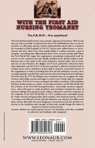 The F. A. N. Ys-first anywhere! The First Aid Nursing Yeomanry was a female organisation formed in 1907. Its aim was not only to provide competent first aid on the battlefield put also to train its members to effectively operate and live independently and be able to transport the wounded to field hospitals. So F. A. N. Y nurses were skilled drivers or horsewomen and were often more than usually skilled in outdoor pursuits-such as camping-something that differentiated them from normal nursing staff. When the First World War began the organisation immediately volunteered itself for service on the continent, but was initially rebuffed by the British military establishment who, in the spirit of the times, believed a woman's place was at home and not at war. However, the Belgian and French authorities welcomed them with enthusiasm and the F. A. N. Ys became essential to allied servicemen both as medical carers and as ambulance drivers. Before long the resourceful women of the organisation, as well as providing their first aid and ambulance services, were running hospitals, soup kitchens and canteens and couriering food and clothing to the front lines. By 1915 the British army command came to recognise the value of these indomitable woman and began to work more closely with the organisation and by 1916 F. A. N. Ys were working in the field as mechanics. Old prejudices had been broken down as a matter of necessity and there can be little doubt that the activities of the First Aid Nursing Yeomanry-and similar women's organisations-them did much to erode prejudices and contribute towards the cause of women's suffrage. This special Leonaur edition, released to mark the centenary of the outbreak of the First World War in 1914, combines two remarkable books for reader interest and good value. Each contains a first hand account by a F. A. N. Y serving on the Western Front, and both illustrate not only the incredible work these women did under the most dangerous circumstances, but also provide testimony to the resolution and courage of those who would change the status of women in western society forever. Leonaur editions are newly typeset and are not facsimiles; each title is available in softcover and hardback with dustjacket.