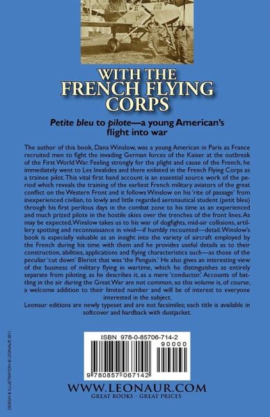 Petite bleu to pilote-a young American's flight into war The author of this book, Dana Winslow, was a young American in Paris as France recruited men to fight the invading German forces of the Kaiser at the outbreak of the First World War. Feeling strongly for the plight and cause of the French, he immediately went to Les Invalides and there enlisted in the French Flying Corps as a trainee pilot. This vital first hand account is an essential source work of the period which reveals the training of the earliest French military aviators of the great conflict on the Western Front and it follows Winslow on his 'rite of passage' from inexperienced civilian, to lowly and little regarded aeronautical student (petit bleu) through his first perilous days in the combat zone to his time as an experienced and much prized pilote in the hostile skies over the trenches of the front lines. As may be expected, Winslow takes us to his war of dogfights, mid-air collisions, artillery spotting and reconnaissance in vivid-if humbly recounted-detail. Winslow's book is especially valuable as an insight into the variety of aircraft employed by the French during his time with them and he provides useful details as to their construction, abilities, applications and flying characteristics such-as those of the peculiar 'cut down' Bleriot that was 'the Penguin.' He also gives an interesting view of the business of military flying in wartime, which he distinguishes as entirely separate from piloting, as he describes it, as a mere 'conductor.' Accounts of battling in the air during the Great War are not common, so this volume is, of course, a welcome addition to their limited number and will be of interest to everyone interested in the subject. Leonaur editions are newly typeset and are not facsimiles; each title is available in softcover and hardback with dustjacket.