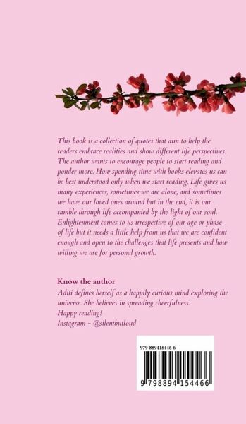 "With the Light of Soul" is a collection of quotes that aim to help the readers embrace realities and show different life perspectives. The author wants to encourage people to start reading and ponder more. How spending time with books elevates us can be best understood only when we start reading. Life gives us many experiences, sometimes we are alone, and sometimes we have our loved ones around but in the end, it is our ramble through life accompanied by the light of our soul. Enlightenment comes to us irrespective of our age or phase of life but it needs a little help from us that we are confident enough and open to the challenges that life presents and how willing we are for personal growth.