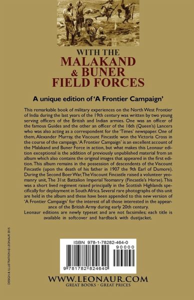 A unique edition of 'A Frontier Campaign' This remarkable book of military experiences on the North West Frontier of India during the last years of the 19th century was written by two young serving officers of the British and Indian armies. One was an officer of the famous Guides and the other an officer of the 16th (Queen's) Lancers who was also acting as a correspondent for the 'Times' newspaper. One of them, Alexander Murray, the Viscount Fincastle won the Victoria Cross in the course of the campaign. 'A Frontier Campaign' is an excellent account of the Malakand and Buner Force in action, but what makes this Leonaur edition exceptional is the addition of previously unpublished material from an album which also contains the original images that appeared in the first edition. This album remains in the possession of descendents of the Viscount Fincastle (upon the death of his father in 1907 the 9th Earl of Dumore). During the Second Boer War, The Viscount Fincastle raised a volunteer yeomanry unit, The 31st Battalion Imperial Yeomanry (Fincastle's Horse). This was a short lived regiment raised principally in the Scottish Highlands specifically for deployment in South Africa. Several rare photographs of this unit are held in the album and these have been appended to this new version of 'A Frontier Campaign' for the interest of all those interested in the appearance of the British Army during early 20th century. Leonaur editions are newly typeset and are not facsimiles; each title is available in softcover and hardback with dustjacket.