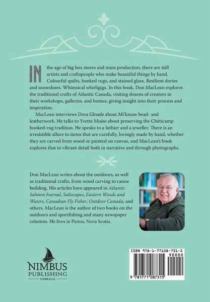 In the age of big box stores and mass production, there are still artists and crafts people who make beautiful things by hand. Colourful quilts, hooked rugs, and stained glass. Resilient dories and snowshoes. Whimsical whirligigs. In this book, Don MacLean explores the traditional crafts of Atlantic Canada, visiting dozens of creators in their workshops, galleries, and homes, giving insight into their process and inspiration. MacLean interviews Dora Gloade about Mi'kmaw bead- and leatherwork. He talks to Yvette Muise about preserving the Chéticamp hooked rug tradition. He speaks to a luthier and a jeweller. There is an irresistible allure to items that are carefully, lovingly, made by hand, whether they are carved from wood or painted on canvas, and MacLean's book explores that. This book contains over two dozen photos.